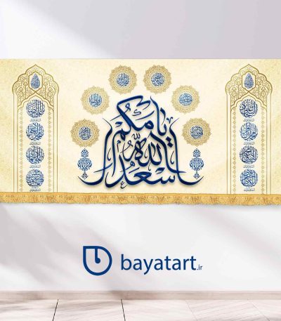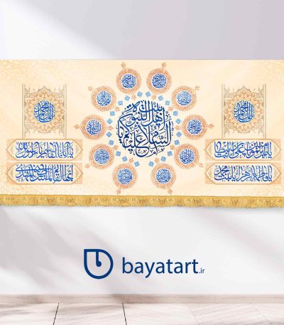 طرح کتیبه پشت منبری لایه باز ولادتی السلام علیکم یا اهل بیت البنوه با چهارده معصوم