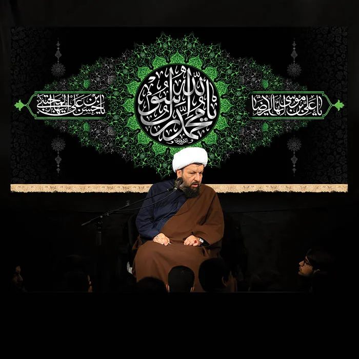 طرح بنر و کتیبه پشت منبری آخر صفر وفات پیامر اکرم (ص) و شهادت امام حسن و امام رضا (ع)